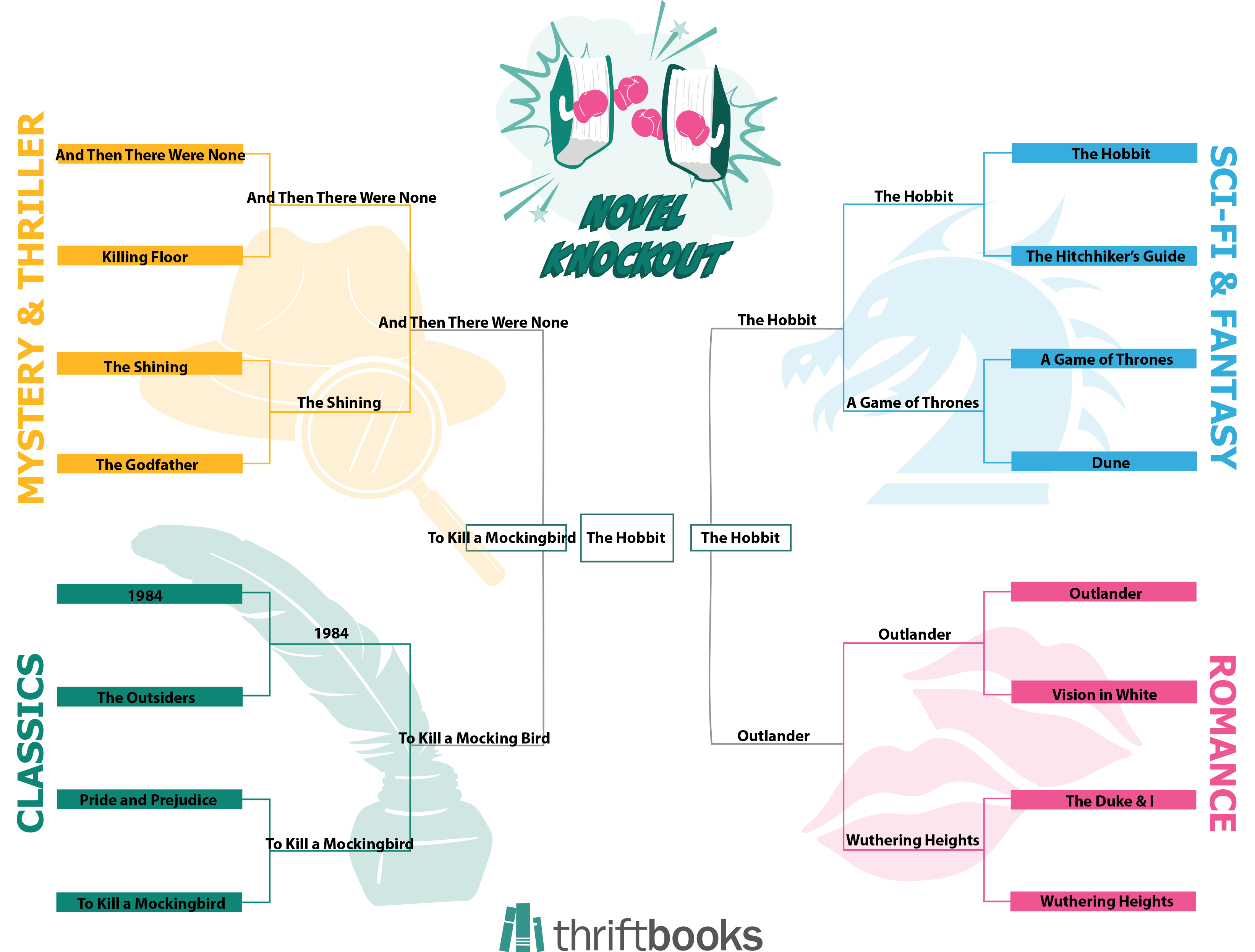 After an exciting round of matchups, our Mass Market Edition of ThriftBooks Novel Knockout has come to a close. From beloved classics to reader-favorite page-turners, this year’s bracket brought together some unforgettable contenders.