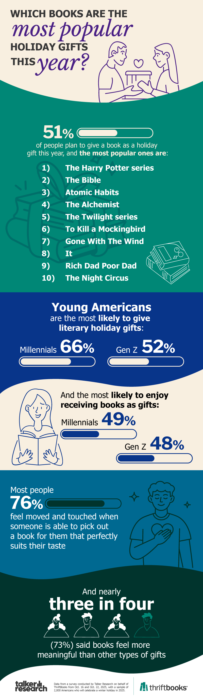 Talker Research surveyed 2,000 Americans who will celebrate a winter holiday in 2025 who have access to the internet; the survey was commissioned by ThriftBooks and administered and conducted online by Talker Research between Oct. 16 and Oct. 22, 2025.
